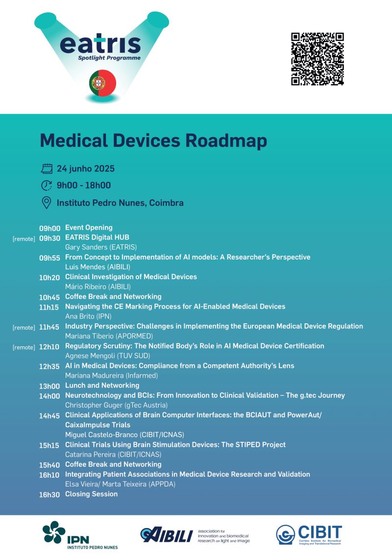 No próximo dia 24 de junho de 2025, o Instituto Pedro Nunes (IPN) recebe o evento Medical Device Roadmap, integrado no programa europeu EATRIS Spotlight PT. Organizado em colaboração com a AIBILI – Association for Innovation and Biomedical Research on Light and Image – e o CIBIT, este encontro reunirá especialistas nacionais e internacionais para debater os desafios e oportunidades no desenvolvimento, validação e certificação de dispositivos médicos baseados em inteligência artificial.