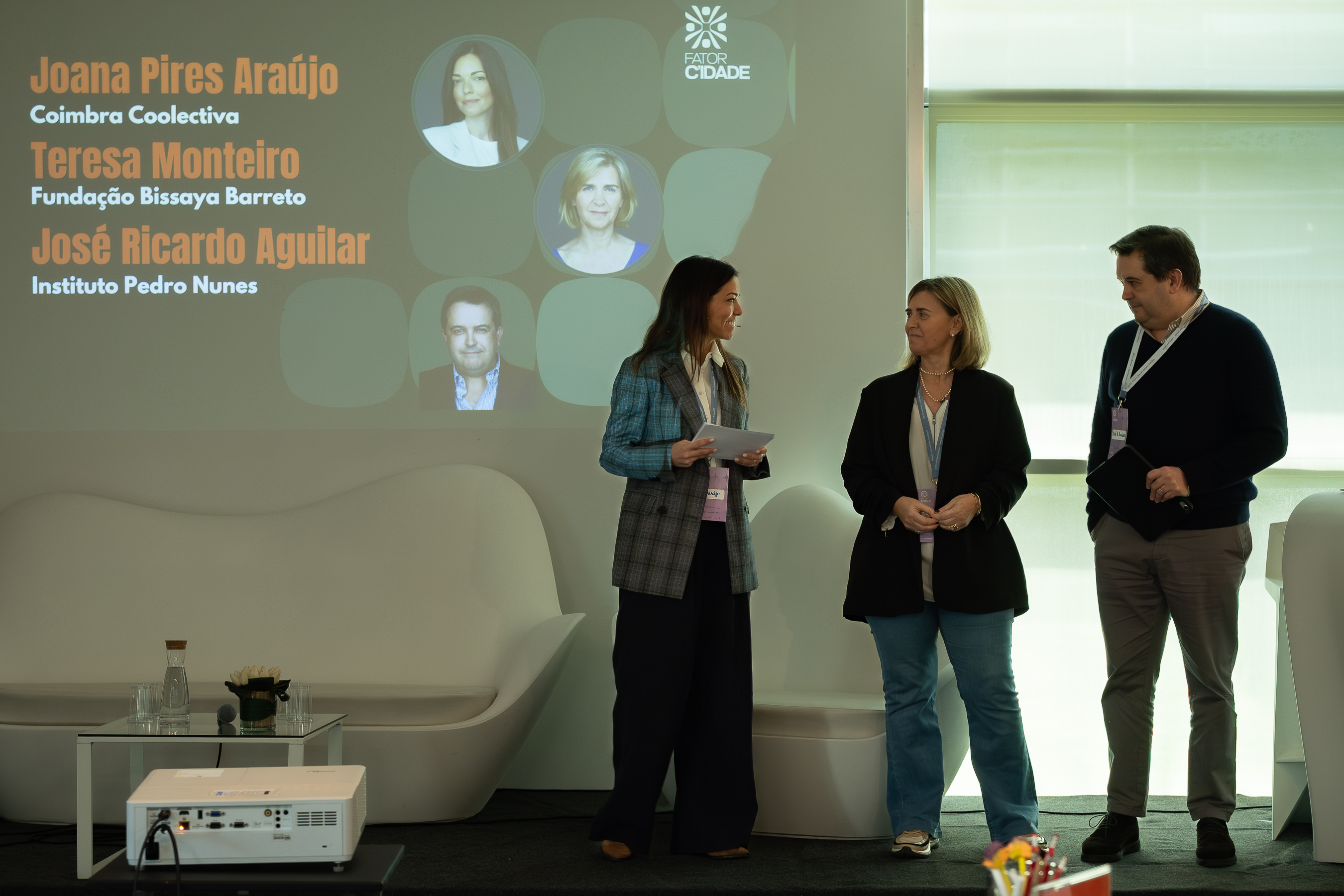 A sessão de abertura contou com a intervenção de Joana Pires Araújo, da Coimbra Coolectiva, de Teresa Monteiro, da Fundação Bissaya Barreto, e de José Ricardo Aguilar, em representação do Instituto Pedro Nunes (IPN).
