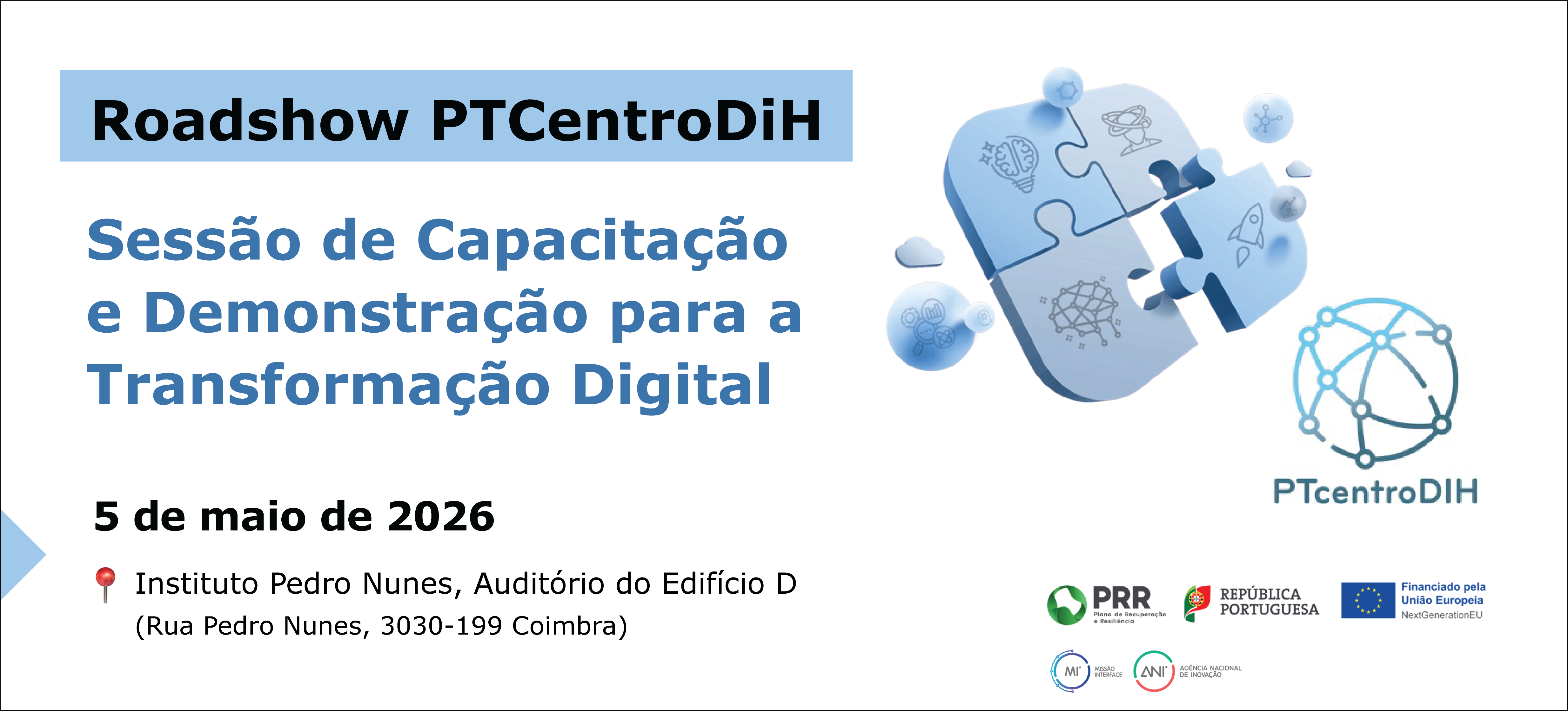 On 5 May 2026 at 2.00 pm, the Instituto Pedro Nunes (IPN) will host a training and demonstration session on the digital transition, organised under the auspices of the PTCentroDiH project – Digital Innovation Hub of the Central Region. The event, co-organised by the IPN in partnership with the Sustainable Habitat Cluster, will take place in the Auditorium of Building D, and will focus on demonstrating practical solutions to the challenges of business digitalisation, ranging from Artificial Intelligence to the Circular Economy.